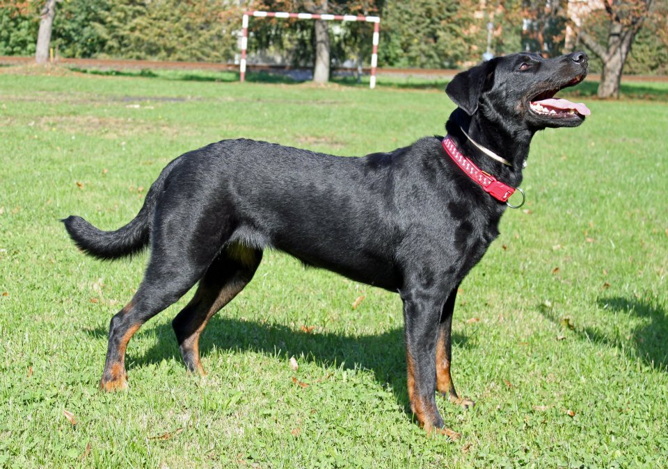 KRÁTKÉ HISTORICKÉ SHRNUTÍ: Beaucký pes, Beauceron nebo Červená punčoška jsou jména používaná od konce XIX. století k označování těchto starobylých planinských francouzských ovčáků, kteří jsou všichni stejného typu, s krátkou srstí na hlavě, s hrubým krátkým osrstěním a obvykle kupírovanýma ušima. Na těle měli pálené znaky, zvláště na koncích všech čtyř končetin, což podnítilo chovatele k tomu, aby tyto psy nazývali "červená punčoška". Srst bývala obvykle černá s pálením, ale také šedá, celá černá nebo celá pálené barvy. Tito psi byli chováni a vybíráni podle svých schopností vést a hlídat stáda ovcí. CELKOVÝ VZHLED: beauceron je velký, pevně stavěný, robustní, mohutný, dobře stavěný a osvalený, bez znaků lymfatičnosti (hrubosti).